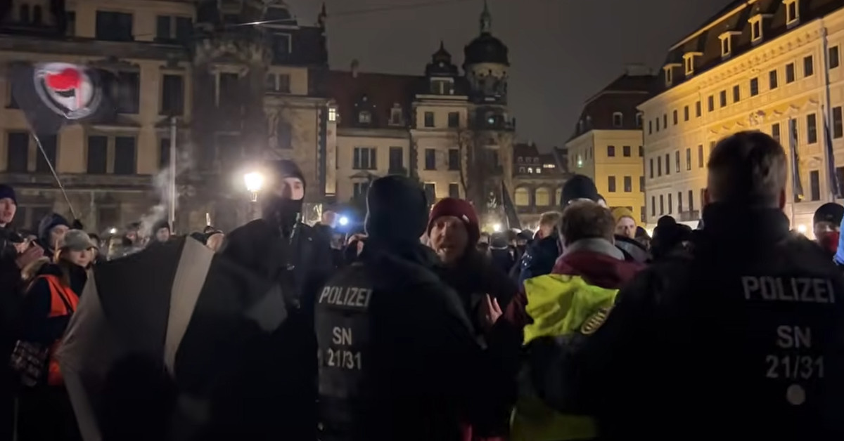 Gegen 18.30 Uhr marschierten rund 1000 Anhänger der linksextremen Szene aus der Neustadt in die Altstadt ein. Bereits bei Erreichen des Schloßplatzes kommt es zu ersten Übergriffen auf alternative Medienvertreter, es gibt Rangeleien. Die Polizei ist anfangs nur spärlich präsent, zieht eilig Kräfte zusammen. Feuerwerk explodiert, Hass-Parolen ertönen. Es ist eine bewusste Störung des friedlichen Gedenkens in Dresden Und der Versuch, die Würde der Bombentoten mit Füßen zu treten.