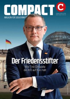 „Der Friedensstifter“: Die Dezember-Ausgabe von COMPACT zeigt den AfD-Co-Vorsitzenden auf dem Cover – weil er auch unter Beschuss stabil bleibt und an der Schwelle eines großen Krieges unablässig für den Frieden wirbt. Lesen Sie, wie dieser Mann zur Hoffnung für Millionen geworden ist – und er auch die Seele der eigenen Partei gegen Freund und Feind verteidigt. COMPACT 12/2025 hier bestellen.