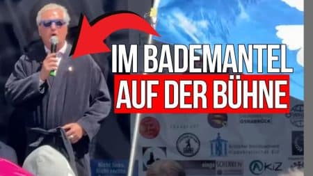 Im Bademantel auf der Bühne bei der Demonstration unter dem Motto „Deutschland steht auf“ am…