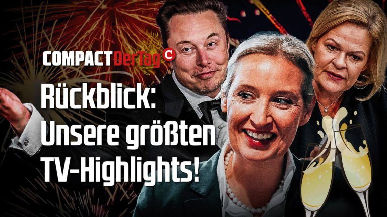 Nur noch wenige Stunden… – 2025 war ein spektakuläres Jahr mit vielen Höhen und Tiefen. In unserem COMPACT-Rückblick sehen Sie die wichtigsten Ereignisse in einer kurzweiligen Zusammenfassung. Wir wünschen einen frohen Jahreswechsel und ein gesundes Neues!