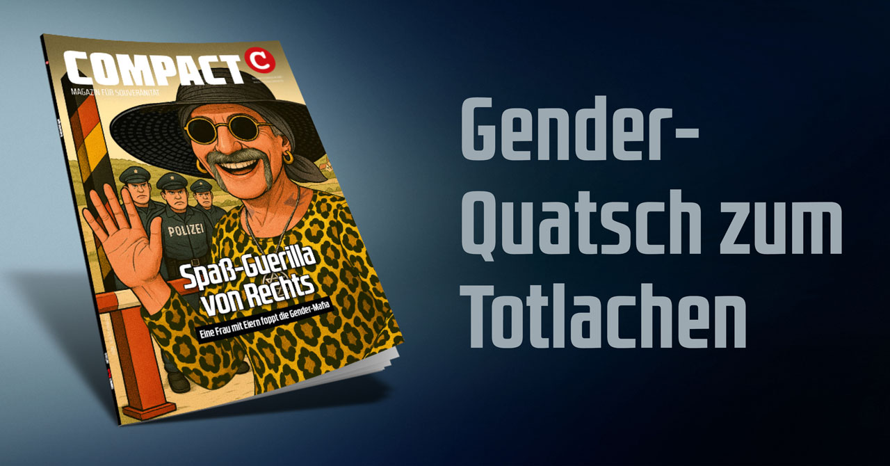 Auch in schweren Zeiten darf man den Humor nicht verlieren: Darum haben wir in unserer druckfrischen Oktober-Ausgabe mit dem Titelthema „Spaß-Guerilla von Rechts“ die neue Widerstands-Ikone Marla-Svenja Liebich aufs Titelblatt gehoben. Wir porträtieren die „Frau mit Eiern“, die der Gender-Gaga-Republik den Spiegel vorhält, zeigen Ihnen aber auch, wer sonst noch an der Humor-Front für Deutschland kämpft – von Eingollan und Tim Kellner bis Shlomo und Clownswelt. Ein großer Beitrag über die Provo-Veteranen, eine Abrechnung mit dem Trans-Irrsinn, ein Eurasien-Dossier und ein brandaktueller Politikteil runden diese Kult-Ausgabe ab. Hier inklusive Geschenk bestellen.