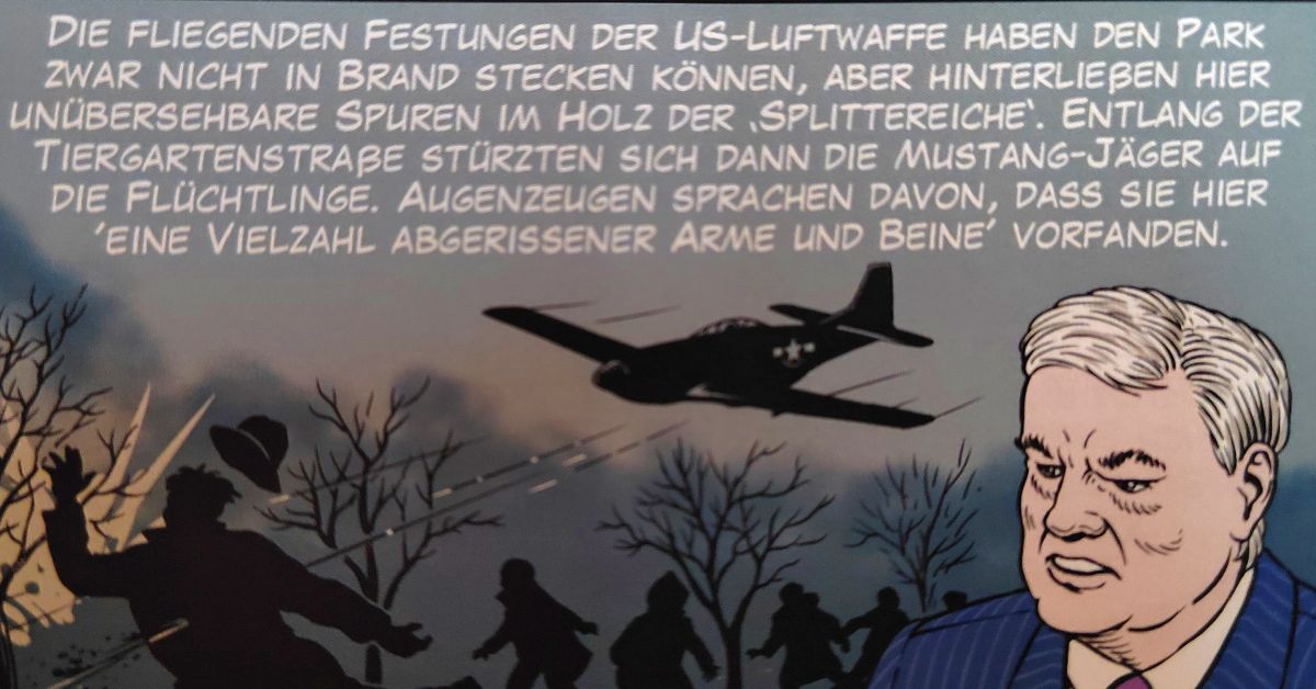Der Leser erfährt in dieser empfehlenswerten Bildergeschichte von Zeichner und Autor Markus Pruss (bekannt durch seinen Nemmersdorf-Comic) nicht nur etwas über die stets von Hofhistorikern abgestrittenen Tieffliegerangriffe – die tödliche Jagd auf Zivilisten durch Piloten der britischen Royal Air Force und der US-Luftwaffe –, sondern klärt auch umfassend darüber auf, was diese Hölle aus Phosphor und Napalm so grauenhaft machte.