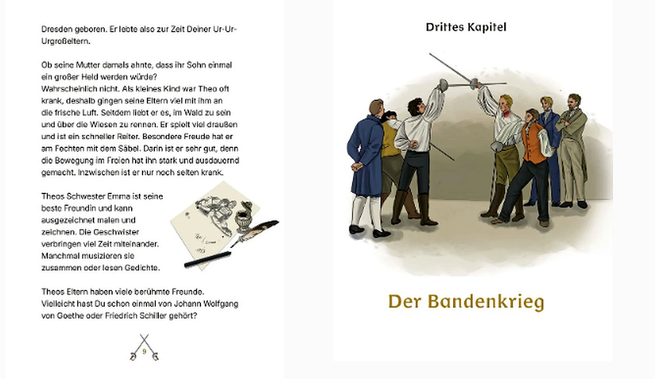 Die drei Guten, Mutigen und Aufrechten, deren Geschichten kindgerecht nacherzählt und wunderbar illustriert werden, sind: Arminius, der Befreier Germaniens, Theodor Körner, der Dichter und Held der Befreiungskriege, sowie Gottfried von Bouillon, der tapfere Kreuzritter und Beschützer des Heiligen Grabes – eine der prägendsten und wichtigsten Gestalten des Mittelalters.