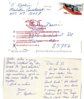 Dazu zählt das Magazin auch eine Postkarte, die Epstein in den letzten Stunden seines Lebens verfasst haben und die kurz nach seinem Tod am 10. August 2019 aus dem Bundesgefängnis Metropolitan Correctional Center in Manhattan abgeschickt worden sein soll. Empfänger der Postkarte ist der ehemalige Teamarzt des US-Gymnastikverbands, Larry Nassar, der über viele Jahre insgesamt 254 junge Frauen sexuell missbraucht hatte und deshalb eine 30-jährige Gefängnisstrafe verbüßt.
