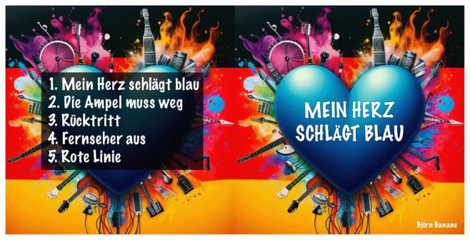 Weiterhin auf der CD „Mein Herz schlägt blau“: Björn Bananes Hit „Die Ampel muss weg“, der bei den Bauerndemos in aller Munde war: