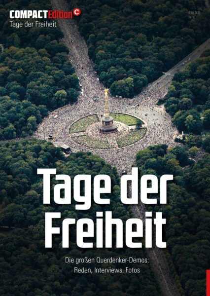 Episch, historisch, ein deutsches Wunder: Die „Tage der Freiheit“ begannen im August — verpassen Sie nicht die große Dokumentation von COMPACT mit allen Reden, den berührenden Fotos, den wichtigsten Interviews des 1. und 29.8. Diesen Bild- und Textband werden Sie noch Ihren Kindern und Enkeln zeigen – als Beweis dafür, dass der deutsche Freiheitswille sich auch im Corona-Staat nicht unterdrücken ließ und SIE auf der Seite des Widerstandes standen. Hier bestellen.