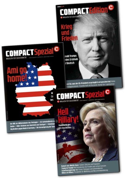 Erstmals auf Deutsch: Donald Trump ”Krieg und Frieden”: Machen Sie sich ihr eigenes Bild! „Krieg und Frieden: Donald Trumps Reden – Erstmals auf Deutsch“ ist schon jetzt ein historisches Standardwerk. Unsere COMPACT-Edition dokumentiert auf 124 Seiten, was Donald Trump wirklich gesagt hat – und was die Lügenpresse Ihnen vorenthielt oder nur verzerrt geschildert hatte.