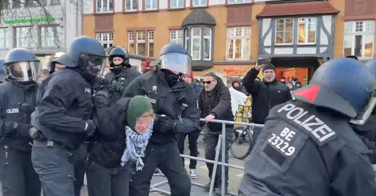 Getrennt von einem Polizei-Puffer, kam es über Stunden hinweg zu Wortgefechten, Parolen wie „Nie wieder Deutschland“ wurden den pro-palästinensischen Demonstranten, die ein Ende des Terrors gegen Palästina und einen gerechten Frieden in Nahost forderten, entgegen geschleudert. Vereinzelt kam es auch zu Rangeleien, mehrmals wurden alternative Streamer durch vermummte Linksautonome attackiert. Einmal mehr schien die Connewitzer Szene über Narrenfreiheit zu verfügen, denn gegen die antiimperialistische Friedensdemonstration ging die Polizei wegen einigen (wenigen) Verstößen gegen das Vermummungsverbot durchaus rabiat vor. Auf Seiten der Genossen von Juliane Nagel und Co gab es ein solches Durchgreifen dagegen nicht.