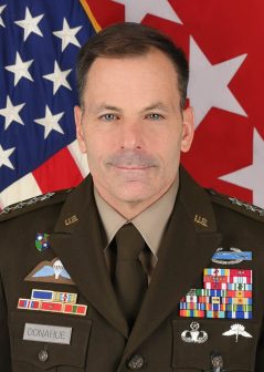 Die Drohungen setzten sich im Sommer 2025 fort. “US-General: NATO könnte Kaliningrad in Rekordzeit erobern“, fasste der $Münchner Merkur$ die Kernbotschaft einer Rede von US-General Christopher Donahue zusammen. Dieser hatte zu diesem Thema auf der ersten internationalen Militärtagung mit dem Titel „Landeuro“ der US-Armee am 16. Juli 2025 in Wiesbaden referiert. Donahue ist nicht irgendwer, sondern seit Dezember 2024 Befehlshaber der US-Armee für Europa und Afrika. Offensichtlich macht er nicht nur wolkige Spekulationen – die Attacke sei schon im Planungsstadium. Donahue: „Wir haben das Szenario [einer Einnahme Kaliningrads] bereits durchgespielt und Pläne für einen solchen Fall entwickelt.“ Und weiter: „Und wir haben die Fähigkeiten entwickelt, Russlands Vorteil durch Masse und Momentum zu neutralisieren. Wir wissen schon genau, was wir dafür brauchen.“