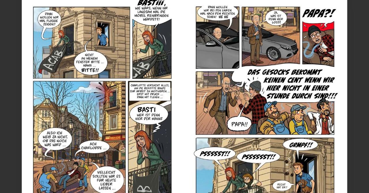Der zweite Comic widmet sich den herrlich überzeichneten Abenteuern der links-grünen Vorzeigefamilie Lauch, die mit ihrem alltäglichen Kampf gegen den Rest der Wirklichkeit für Lacher sorgt. Ihr verzweifelter Versuch, in der neuen Wohngegend Anschluss zu finden, scheitert kläglich. Kein Wunder: Der Vater von Herrn Lauch ist zufällig Wohnungseigentümer und hat die ursprünglichen Mietnomaden aus seinem Eigentum rausgeklagt. Dumm nur, dass so ein Verhalten gar nicht zum Image der Lauchs passt, die von sogenannten „Kapitalistenschweinen“ so gar nichts halten.