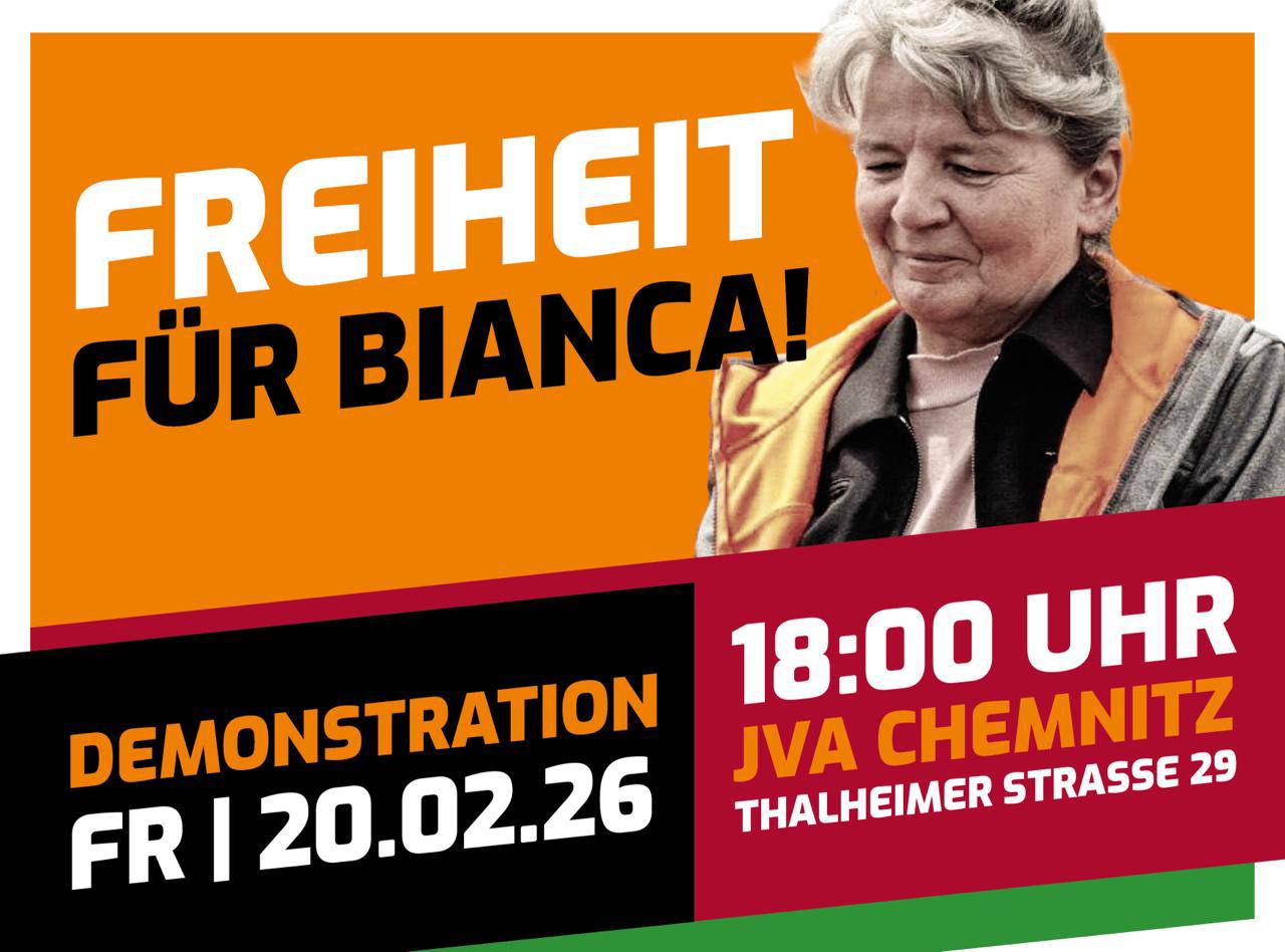 Auch jetzt, fast genau zwei Wochen nach Antritt der Haft, ist eine solche Veranstaltung geplant: Für den 20. Februar 2026 rufen u.a. die Freien Sachsen auf, unter dem Motto „Freiheit für Dr. Bianca Witzschel“ vor der JVA Chemnitz zu demonstrieren, um ein Zeichen gegen die Verfolgung von Oppositionellen zu setzen.