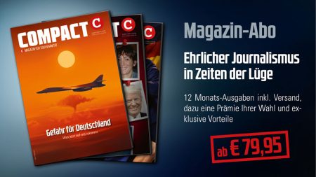 Sie finden unsere Sendungen gut und wichtig? Mit einer Spende können Sie dazu beitragen, dass wir unser immer aufwändigeres Programm – für Sie kostenlos! – finanzieren können: Via Pay Pal an verlag@compact-mail.de oder per Überweisung an COMPACT Magazin GmbH auf das Konto IBAN: DE70 1605 0000 1000 5509 97.