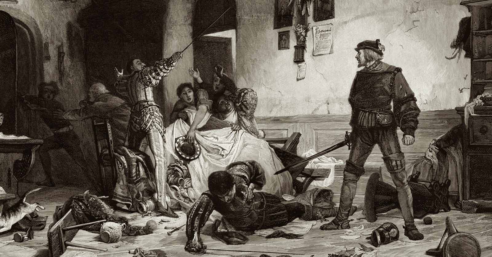 Es geschah an einem Frühlingstag 1516 in einer Weinschenke der italienischen Stadt Viterbo. Fünf französische Adlige benahmen sich hier unverschämt, spotteten über die Verhältnisse in Deutschland und beschimpften dessen Kaiser Maximilian I. Da sprang ein Mann auf, zog sein Schwert und forderte Genugtuung. Er nahm es mit den fünf Franzosen auf, schlug vier von ihnen in die Flucht, der Fünfte wurde durchbohrt und sank tödlich getroffen zu Boden. Der Deutsche schrie ihn an: «Geh hin