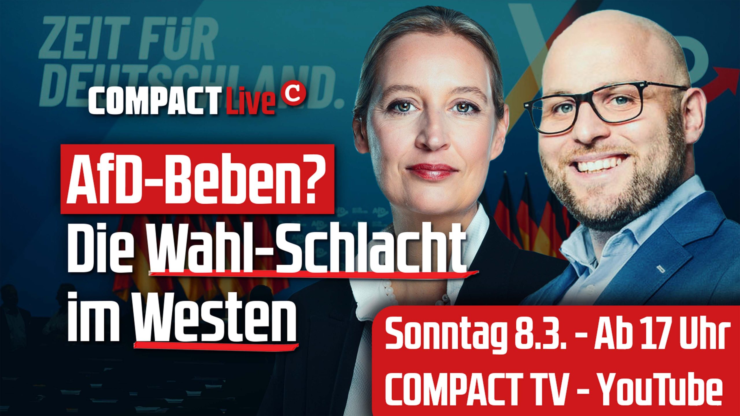 Es ist der größte Stimmungstest seit der Bundestagswahl im Februar 2025 und richtungsweisend im Superwahljahr: Heute sind die Menschen in Baden-Württemberg und Bayern aufgerufen, wählen zu gehen. Die zentrale Frage lautet: Wie stark wird die AfD? Damit Sie keine Information verpassen, bietet COMPACT-TV einen großen Livestream. Und damit Sie nicht nur bequem von zuhause aus zuschauen können, sondern auch ihre Solidarität zum Ausdruck bringen, haben wir die Kanzlermedaille in Silber. Zeigen auch Sie Solidarität. Hier mehr erfahren.