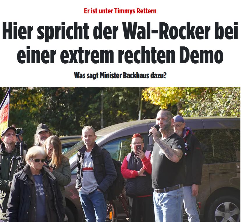 Unterdessen werden Helfer, die sich für die Rettung des Wals engagieren, von Linksgrünen im Verein mit Mainstream-Medien und an den Pranger gestellt – weil sie die falsche Gesinnung haben. Erst gestern wurde Danny Hilse, der festes Mitglied im Rettungsteam von Buckelwal Timmy ist, von der Bild-Zeitung vorgeführt. Der „Wal-Rocker“ (Bild) sei im Oktober 2025 „Mitorganisator einer extrem rechten Demo in Uelzen“ gewesen, „die auch dem Verfassungsschutz bekannt ist“. Und das Springer-Blatt ergänzt: „Andere Fotos aus den Jahren zuvor zeigen ihn bei den Hells Angels.“