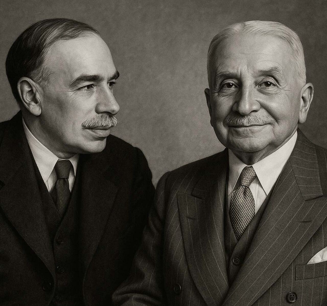 1914 brach der Goldstandard international zusammen – zur Finanzierung der Kriegsanstrengungen mussten sich alle Staaten verschulden, im Deutschen Reich verfünffachte sich der Geldumlauf zwischen 1913 und 1918 – und wurde auch danach nur in einigen wenigen Staaten wieder eingeführt. Der Brite John Maynard Keynes lieferte die Theorie zu diesem Umschwung: Er war der erste Ökonom, der in der Golddeckung der Währungen ein „barbarisches Überbleibsel“ sah. Auf drei Sätze gebracht lautet seine tragende Idee: In marktwirtschaftlichen System gibt es aus strukturellen Gründen eine Nachfragelücke, die für die Arbeitslosigkeit verantwortlich ist. Diese Nachfragelücke muss geschlossen werden, indem die Regierung über Fiskal- und Zinspolitik Industrie und Privathaushalten billiges Geld zur Verfügung stellt, notfalls mittels Staatskonsum die Konjunktur stimuliert. Geldschöpfung und Staatsverschuldung („Deficit spending“) sind hierfür obligatorisch.